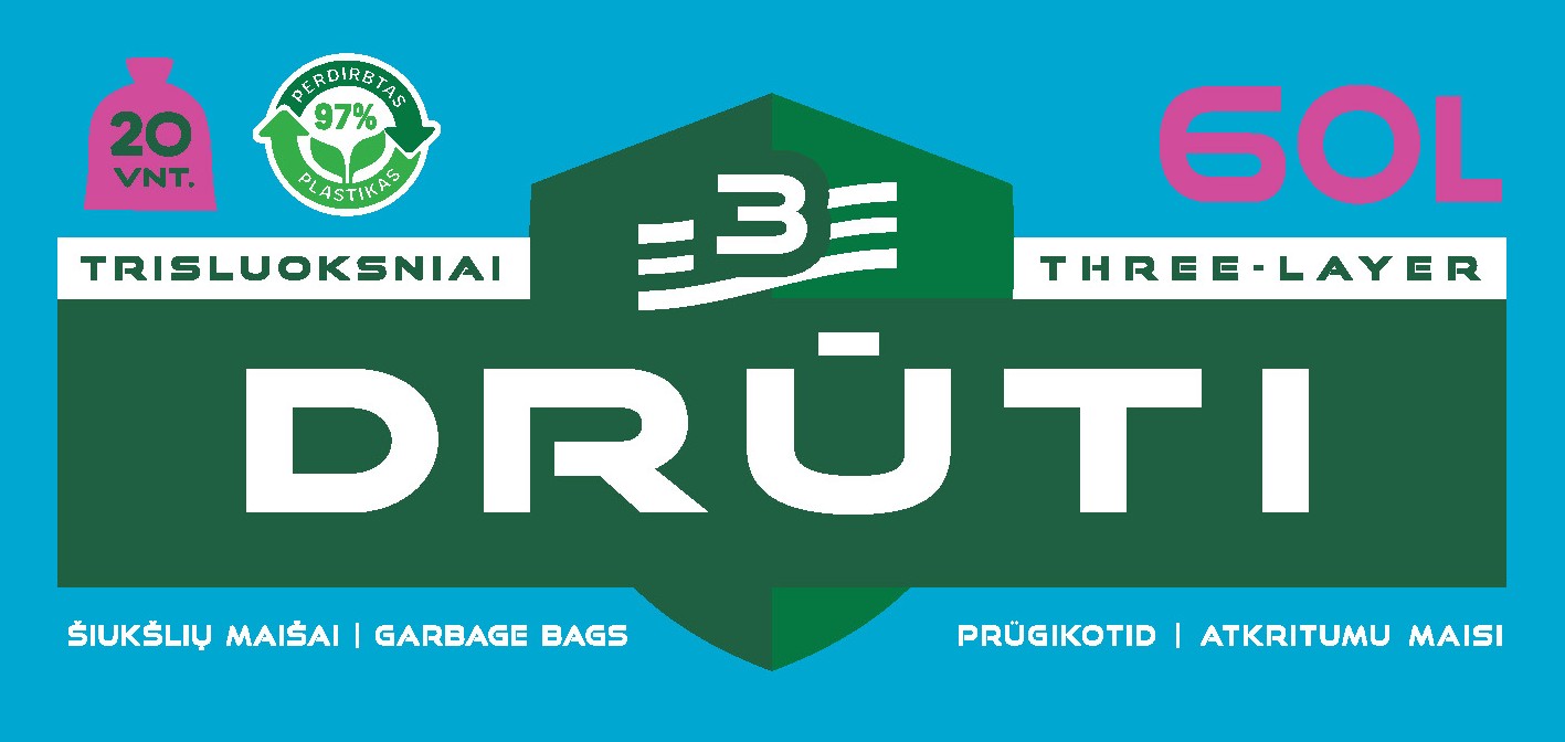 Polietileniniai maišai „DRŪTI“ yra pagaminti naudojant trijų sluoksnių gamybos technologiją.